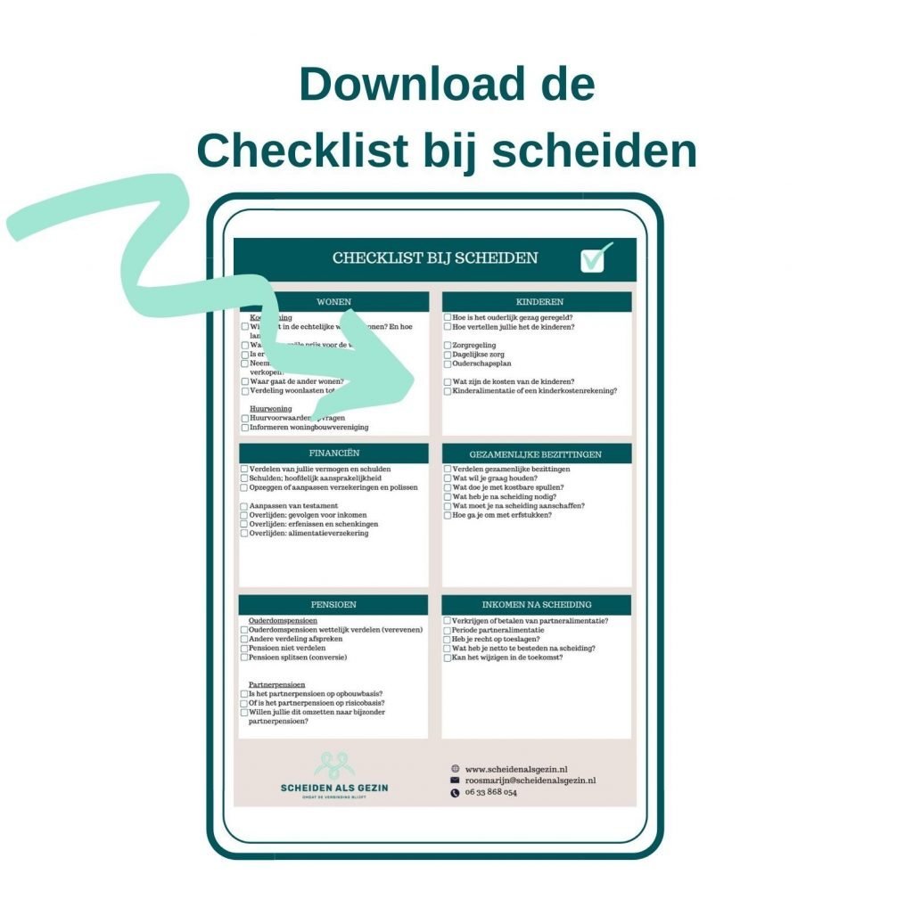 Als je gaat scheiden, komt er veel op je af. Er moeten veel zaken geregeld worden. Alles loopt door elkaar heen en waar moet je beginnen? Met deze checklist heb je de belangrijkste zaken, die bij een scheiding geregeld moeten worden, op een rij.